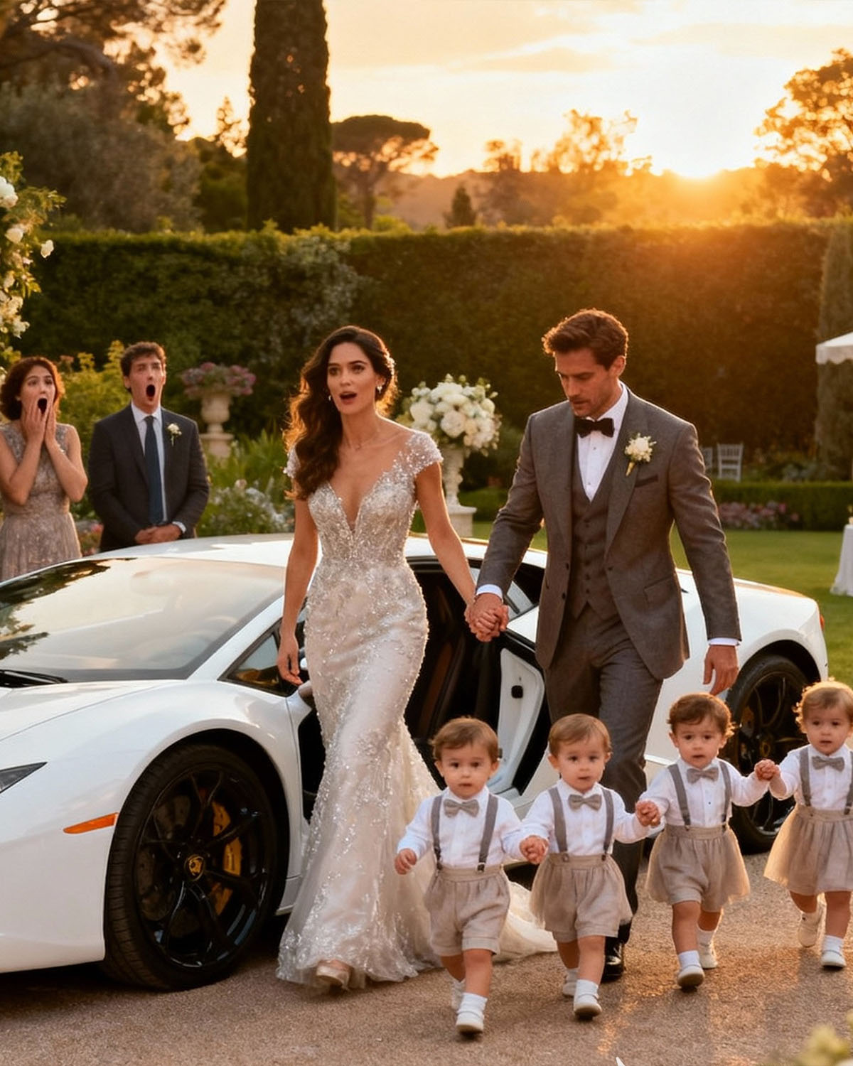 Llegué con Ethan y nuestros cuatro niños pequeños. Salimos de un todoterreno blanco, no llamativo, pero limpio, seguro. En el momento en que mis tacones tocaron el pavimento, las conversaciones a nuestro alrededor se silenciaron.