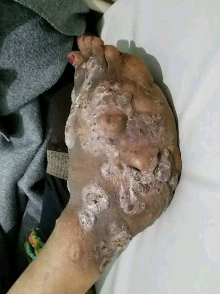 Y las heridas… en un mosaico de manchas, costras, llagas y puntos violáceos que parecían extenderse como si tuvieran vida propia.