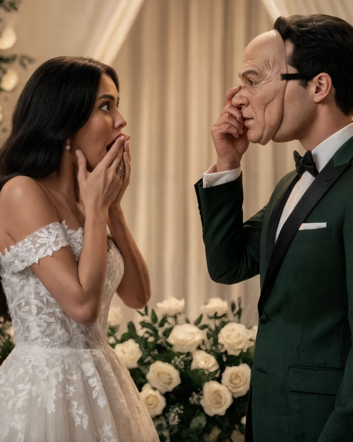 La boda tuvo lugar en una gran mansión en Tagaytay. Bajo su costoso vestido, sentía un peso en el pecho. No era alegría… sino miedo. En el altar estaba el hombre con el que se iba a casar: Don Armando. Gordo, sudoroso, de voz grave.