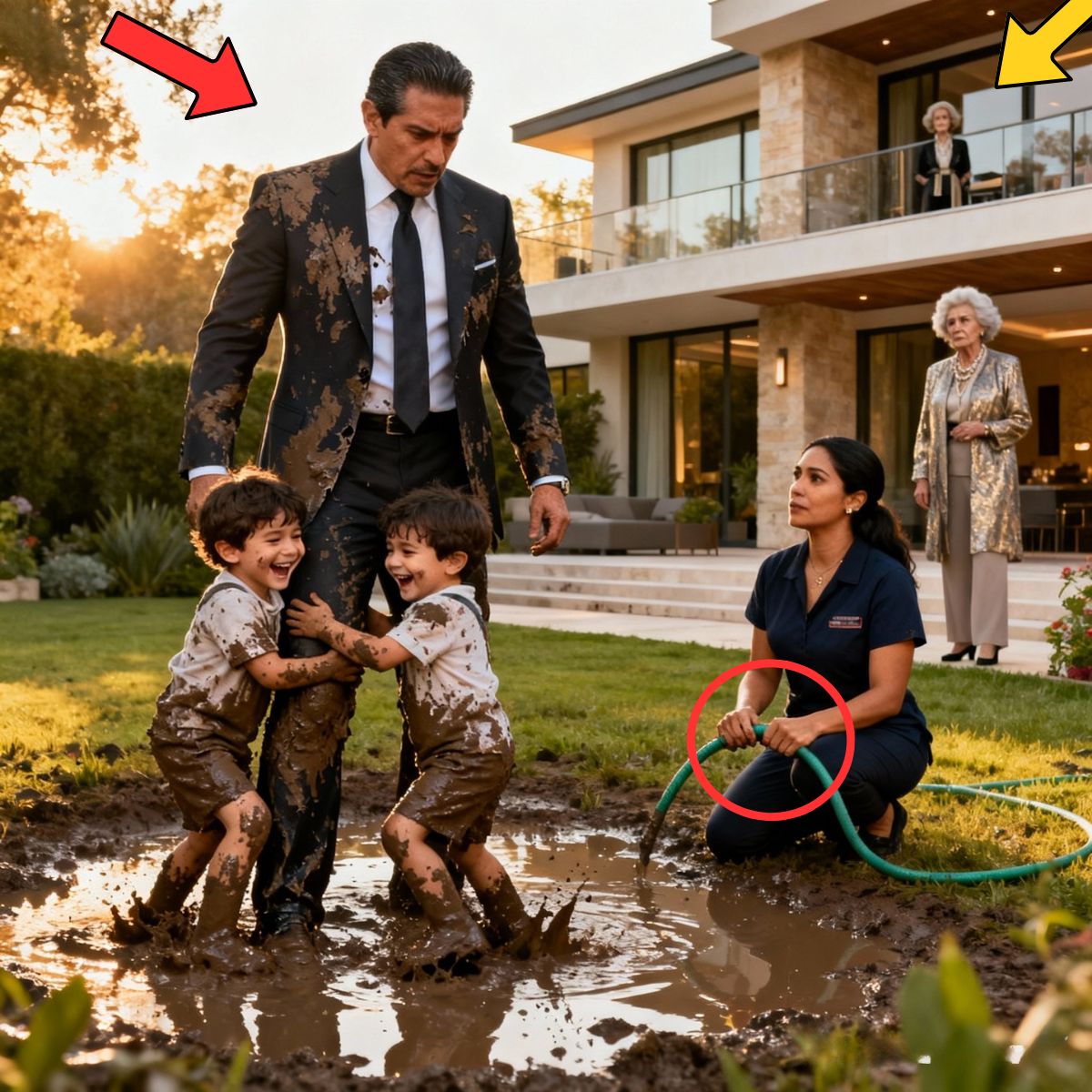 Allí, justo en el centro del césped, donde el jardinero jamás habría permitido un desnivel, había un enorme charco de lodo. Y en medio del charco, sus gemelos de tres años, Daniel y Luca, gateaban, resbalaban, se empujaban y caían riendo a carcajadas. Las manos embarradas, la ropa de marca irreconocible, el pelo pegado de barro.